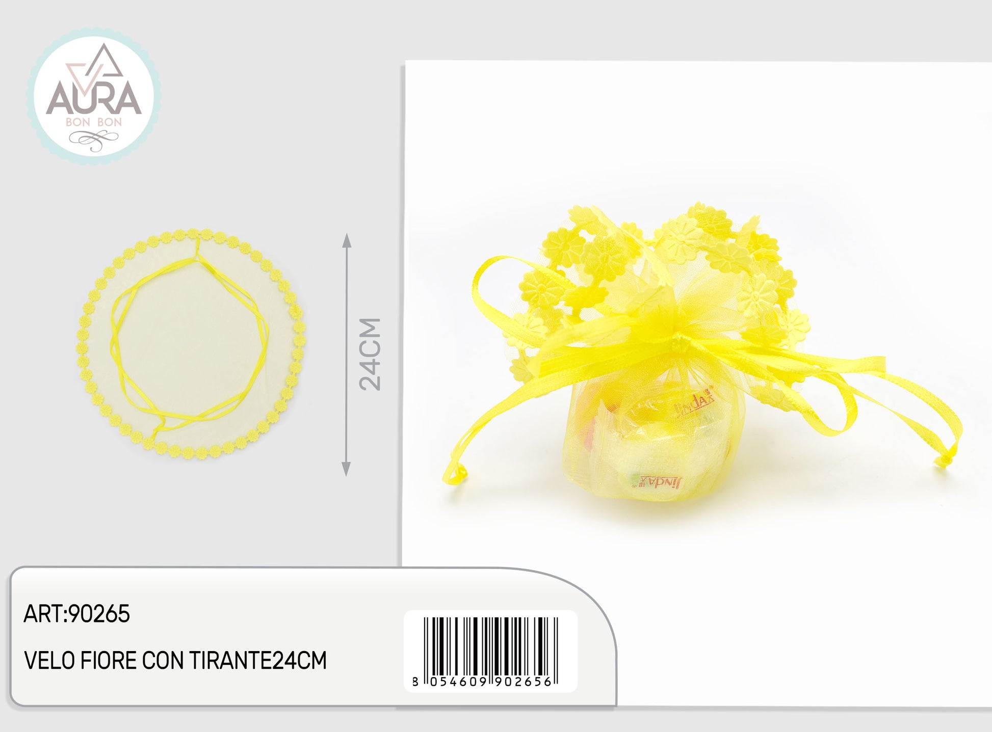 24cm yellow flower veil with tie