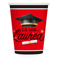 Festeggia la tua laurea con stile: set di 8 bicchieri rossi e neri decorati con pergamena e tocco, perfetti per brindare a un traguardo indimenticabile.