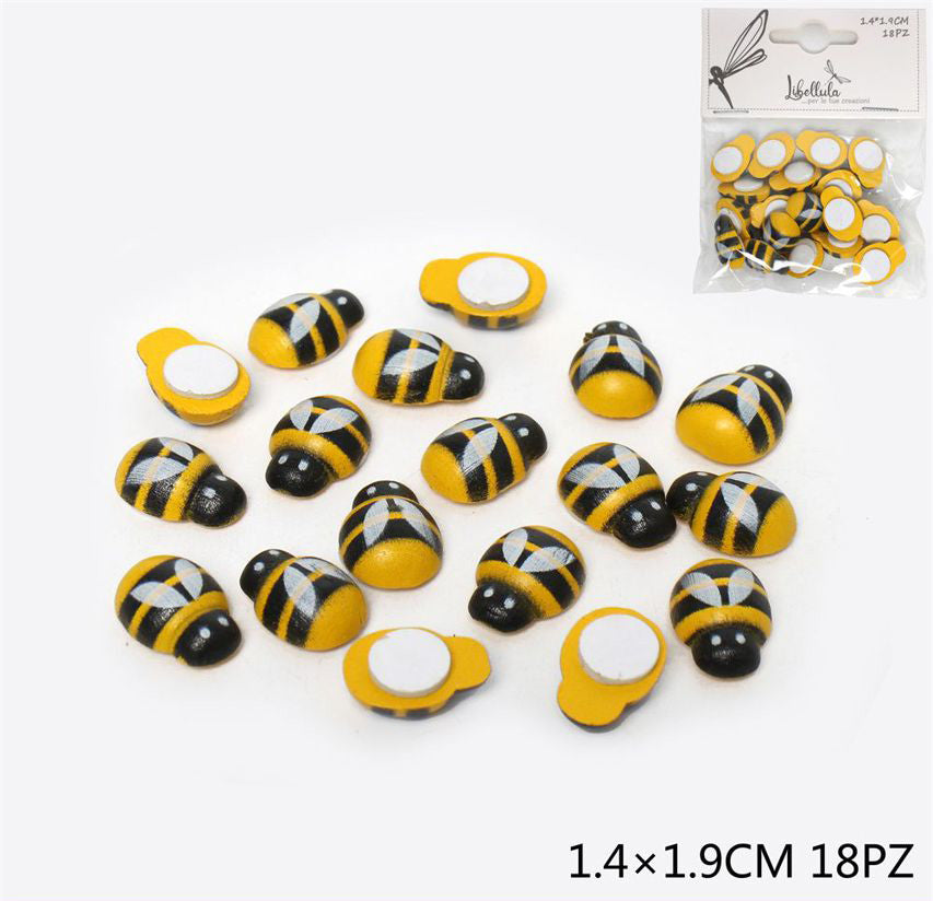 Api in legno con adesivo 1,4x1,9cm 18pz