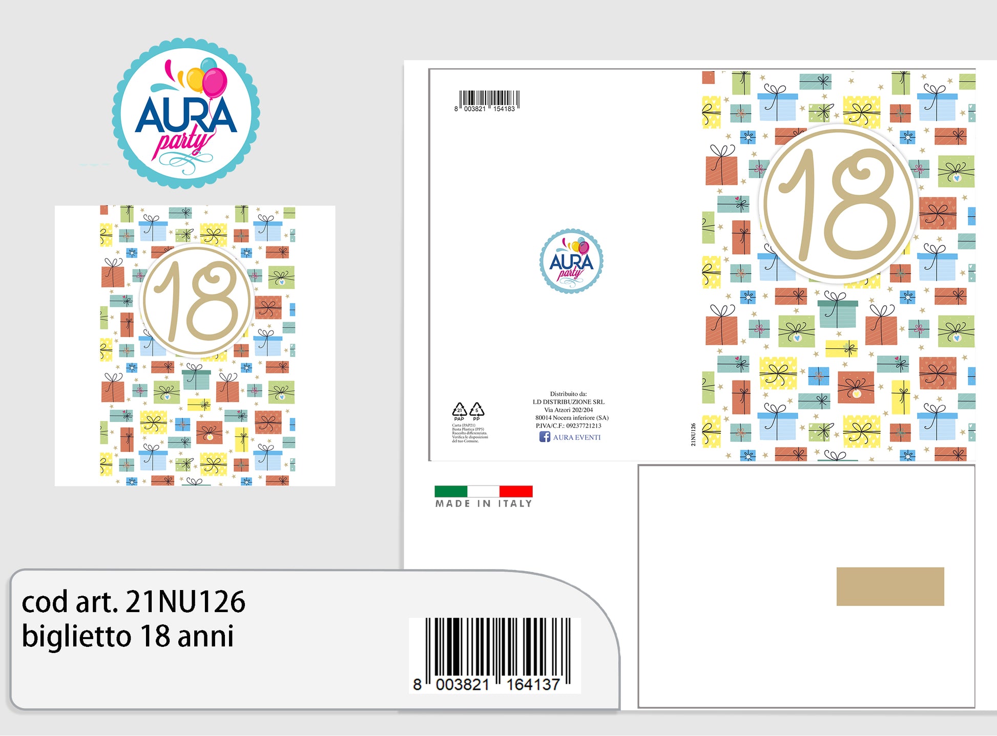 Il biglietto è impreziosito da glitter ed è completo di busta da lettere.