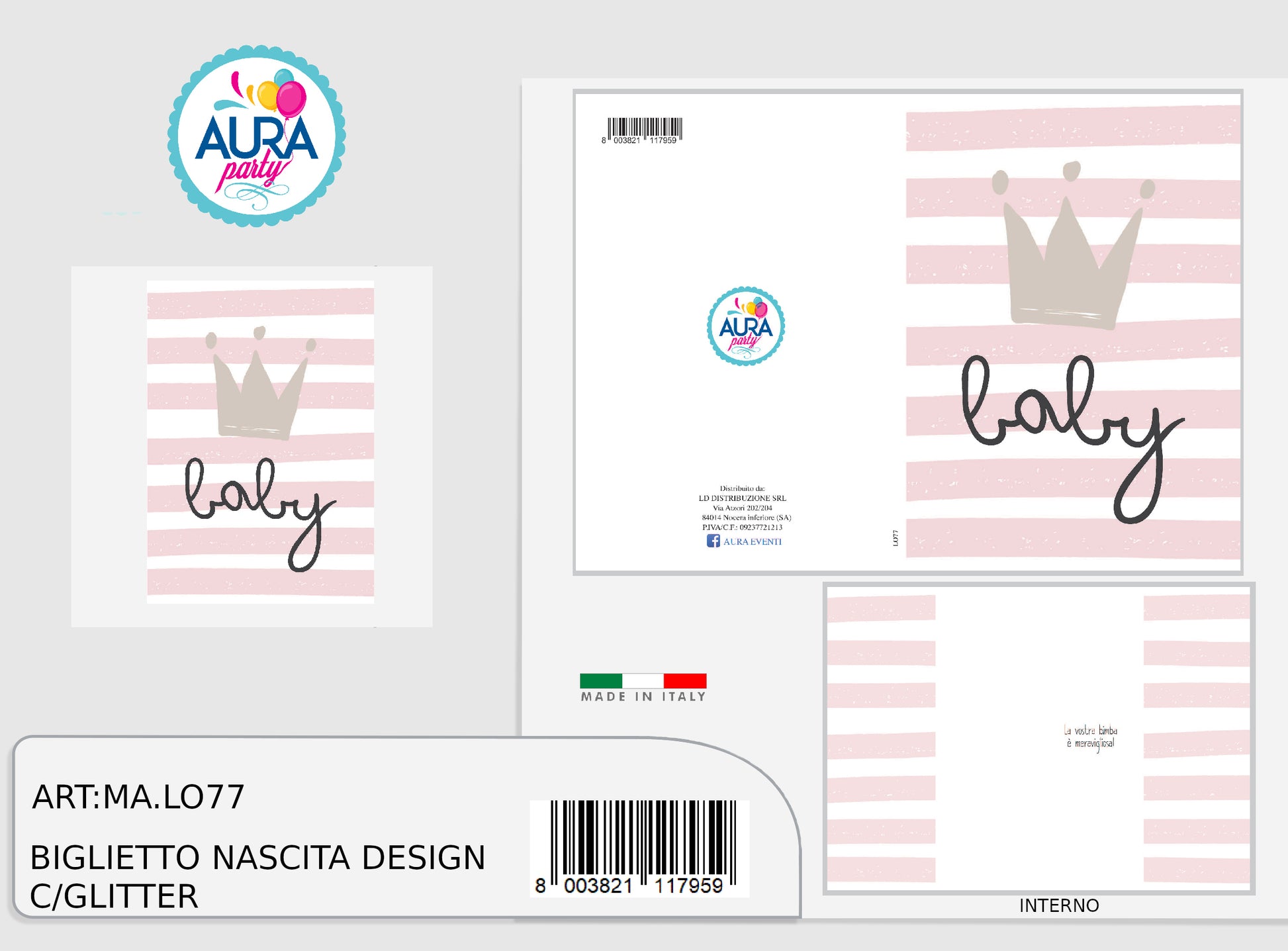 Il biglietto è impreziosito da glitter ed è completo di busta da lettere.