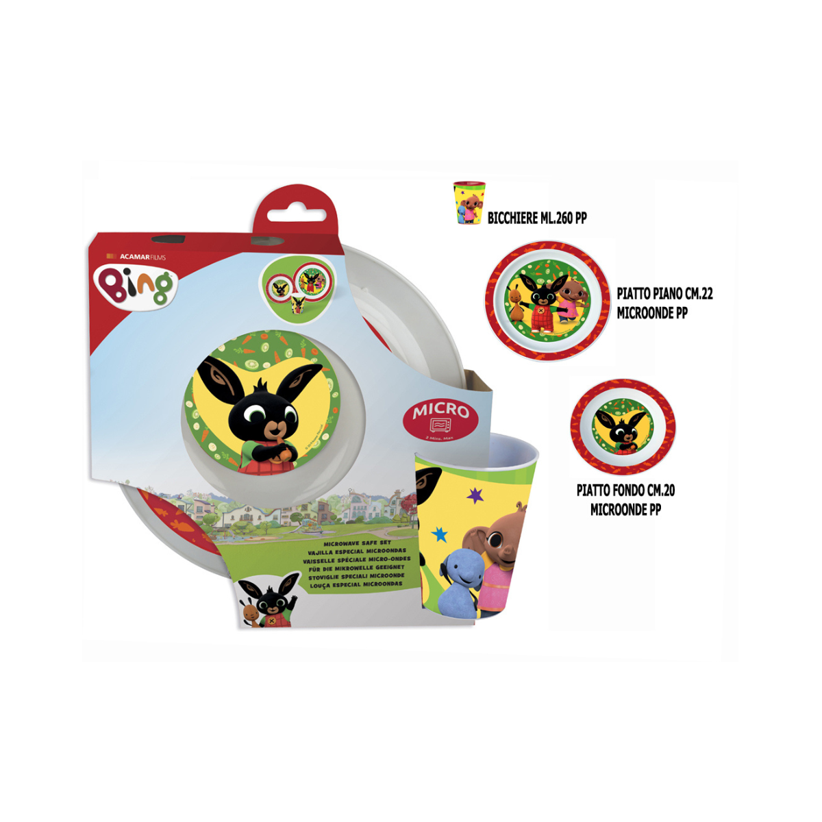 Bing set 3pz. 2 piatti+Bicchiere utilizzabili in microonde