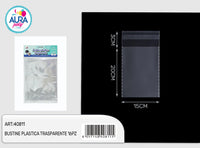 Bustine di plastica trasparente 15x20cm, confezione da 16 pezzi con chiusura adesiva pratica. Perfette per conservare piccoli oggetti in modo semplice e elegante, mostrando il loro contenuto