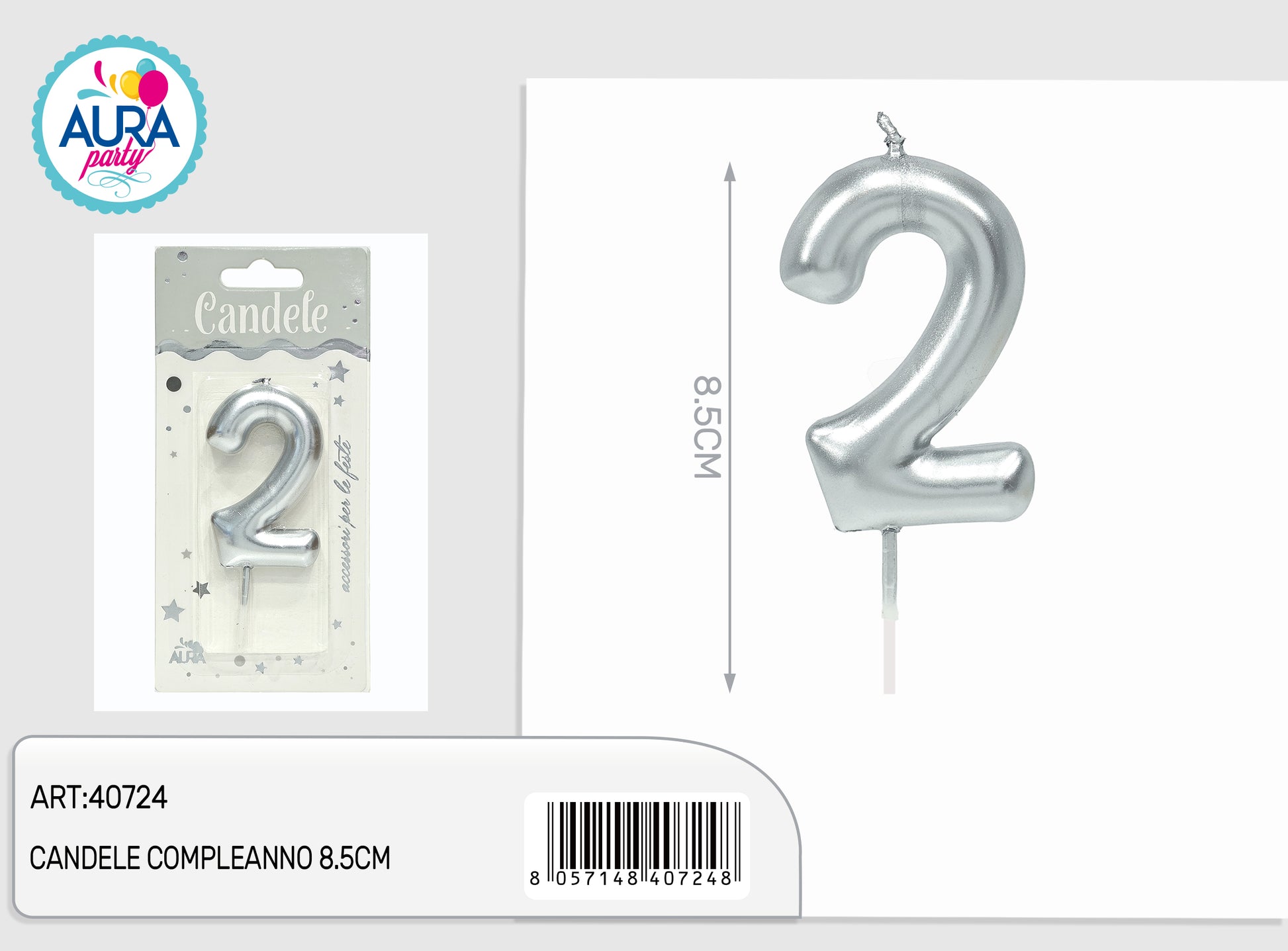 candele compleanno 8.5cm argento 2