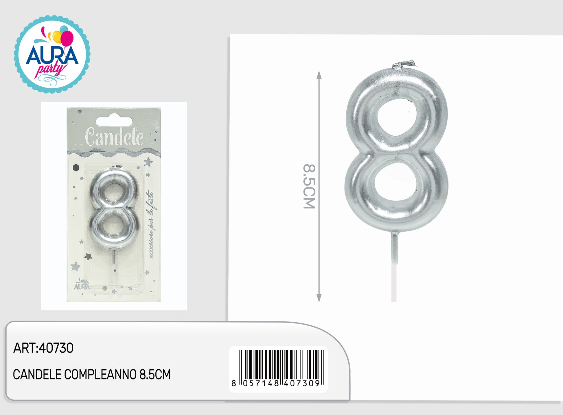 candele compleanno 8.5cm argento 8