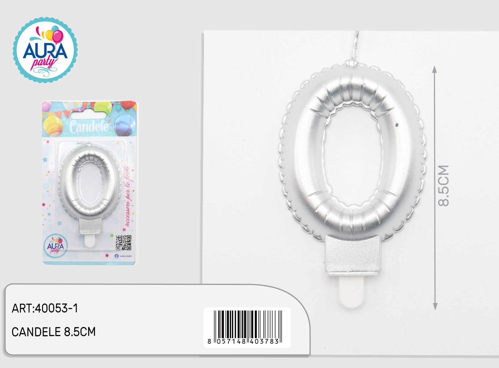 candelina compleanno in argento metalizzato 0