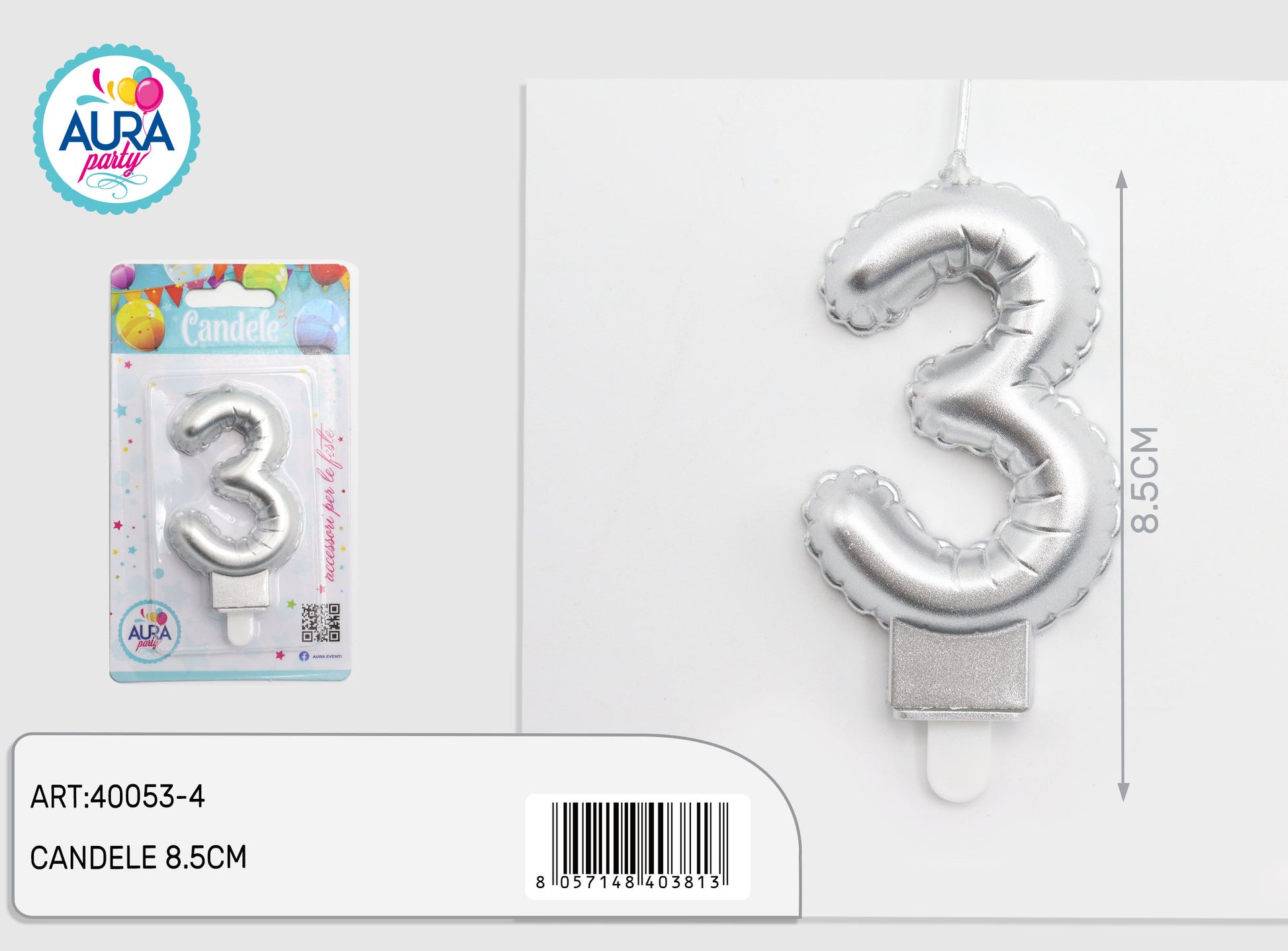 candelina compleanno in argento metalizzato 12