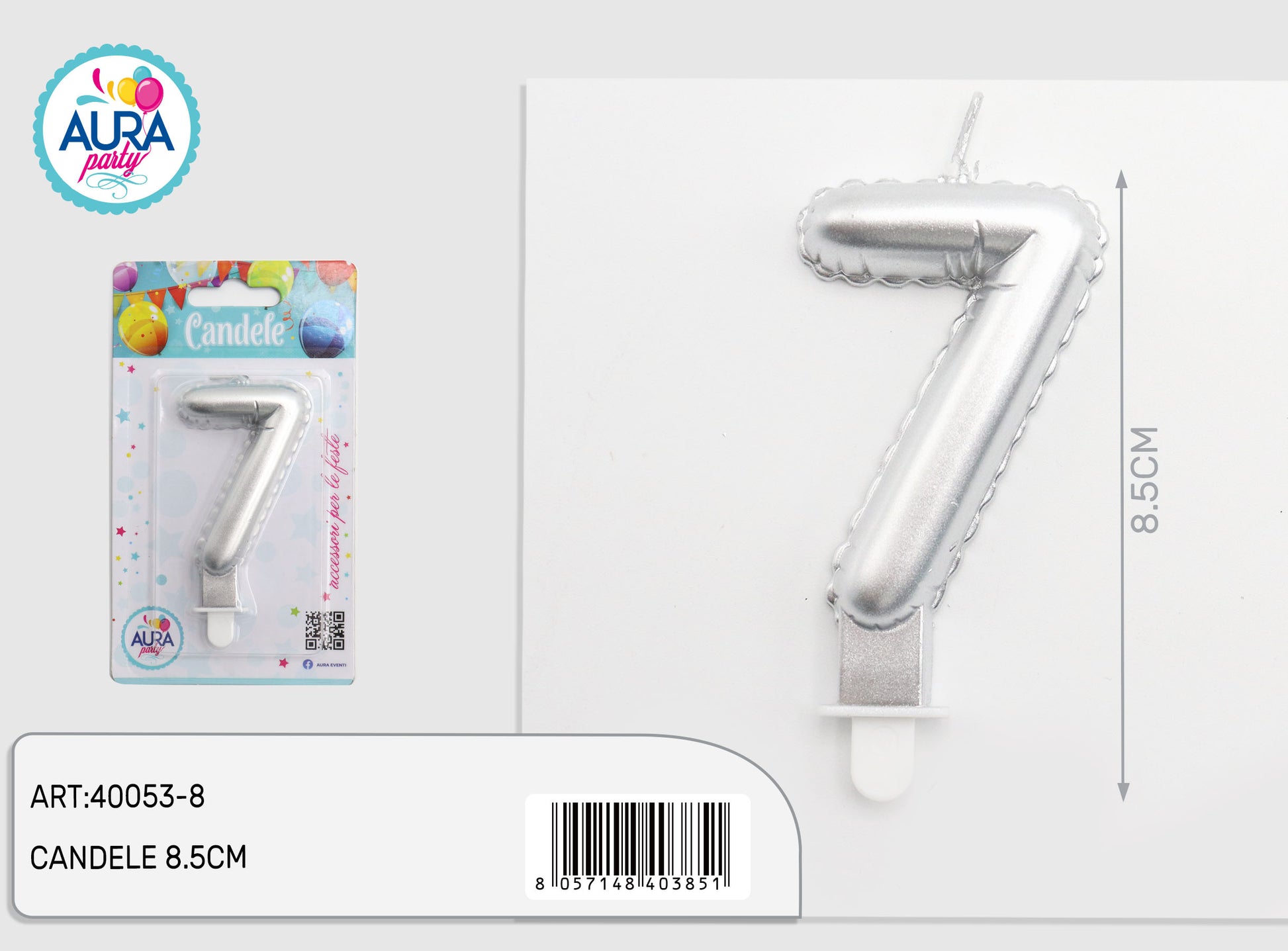 candelina compleanno in argento metalizzato 16
