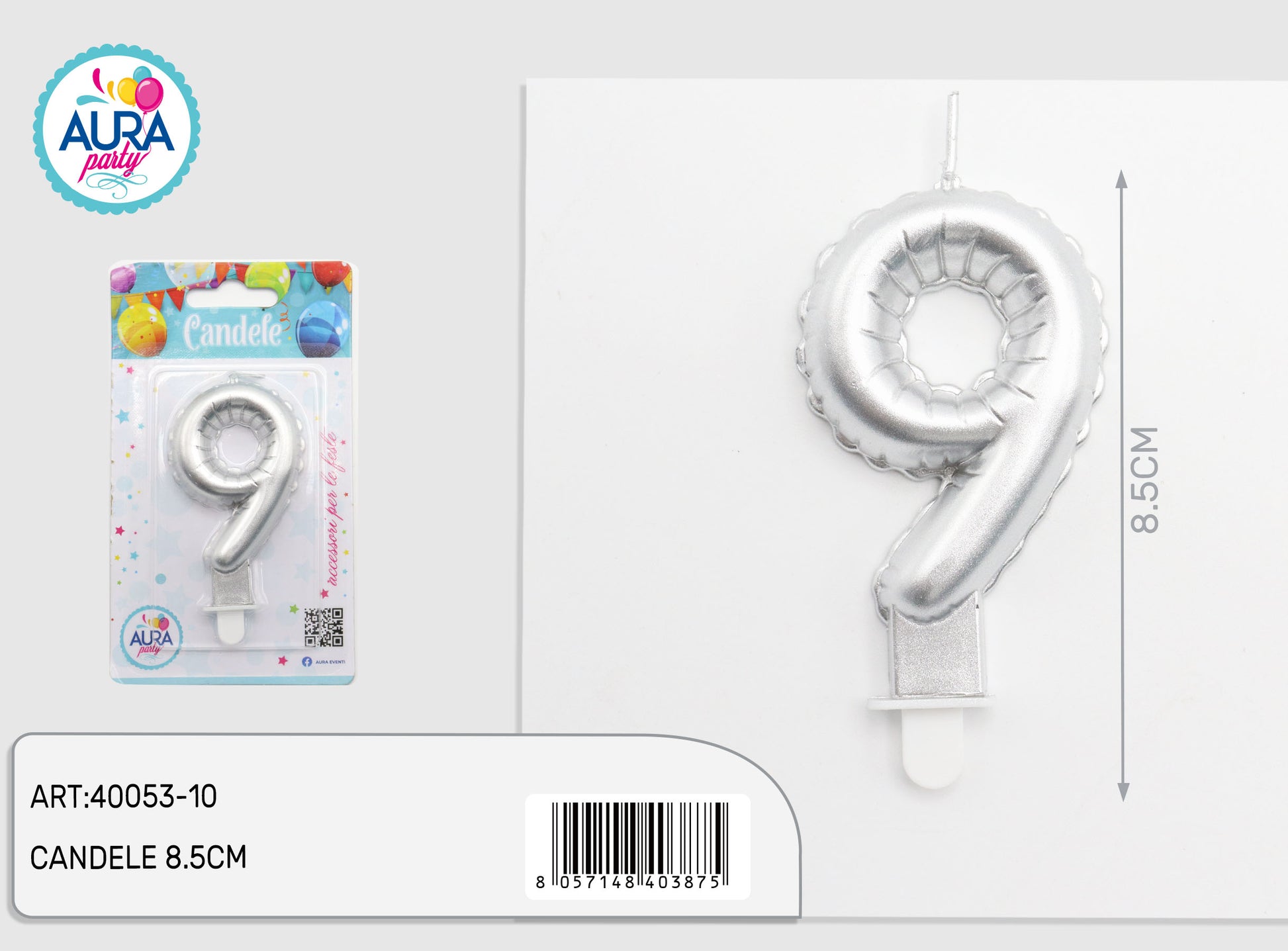 candelina compleanno in argento metalizzato 9