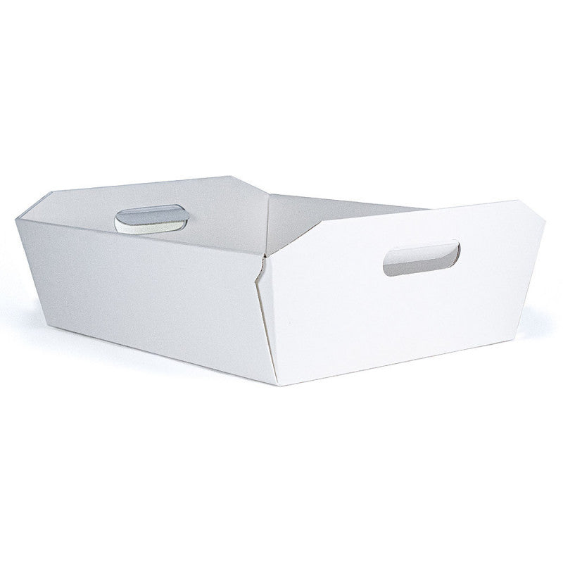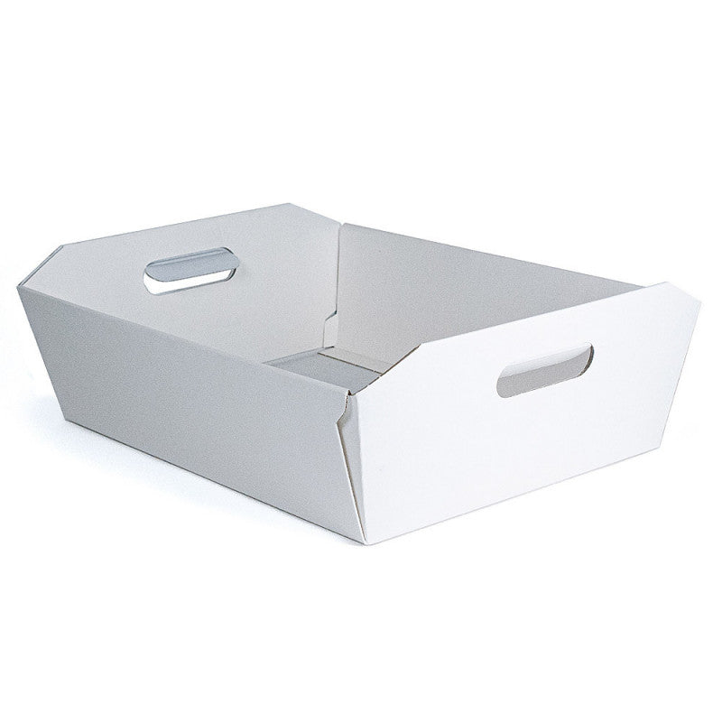 Cesto in cartone bianco 400x300x120mm, perfetto per composizioni regalo eleganti e pratiche. Dona un tocco raffinato ai tuoi doni!