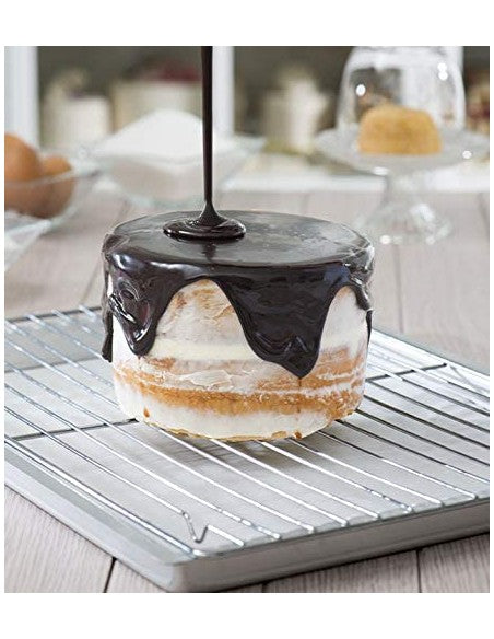 Griglia raffredda torte e di colaggio rettangolare a trama larga, in metallo antiaderente, di dimensioni 30,4 x 45,4 cm da Decora, da usare per raffreddare preparazioni dolci e salate. Ottima anche come supporto in fase di glassatura del dolce e poggiandola su un vassoio, consente di recuperare la glassa in eccesso.