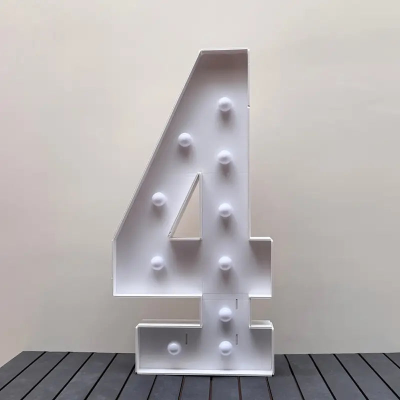 Numero 4 in cartone con luce calda, altezza 1m. Montaggio rapido e intuitivo per illuminare le tue feste con stile. Crea atmosfere indimenticabili!