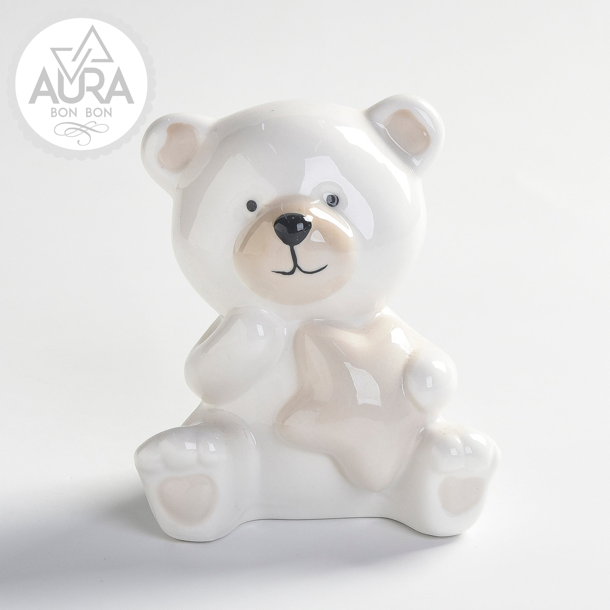 Dolcissimo orsetto in ceramica bianca, impreziosito da una stellina in rilievo. Perfetto come bomboniera per battesimi, nascite e altre occasioni speciali. Un pensiero elegante e delicato, ideale per regalare un ricordo unico e raffinato.