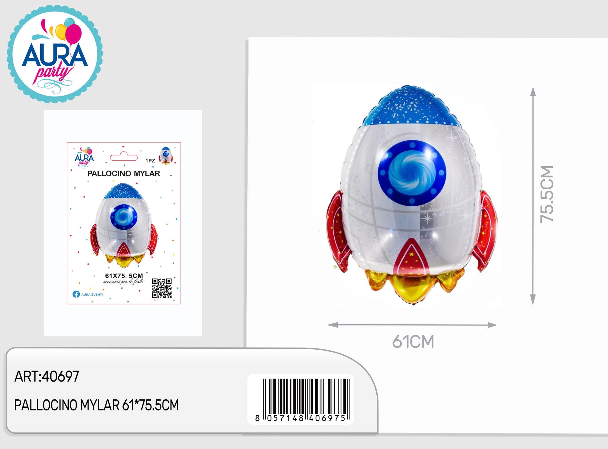 palloncino foil razzo spaziale 61x75,5cm