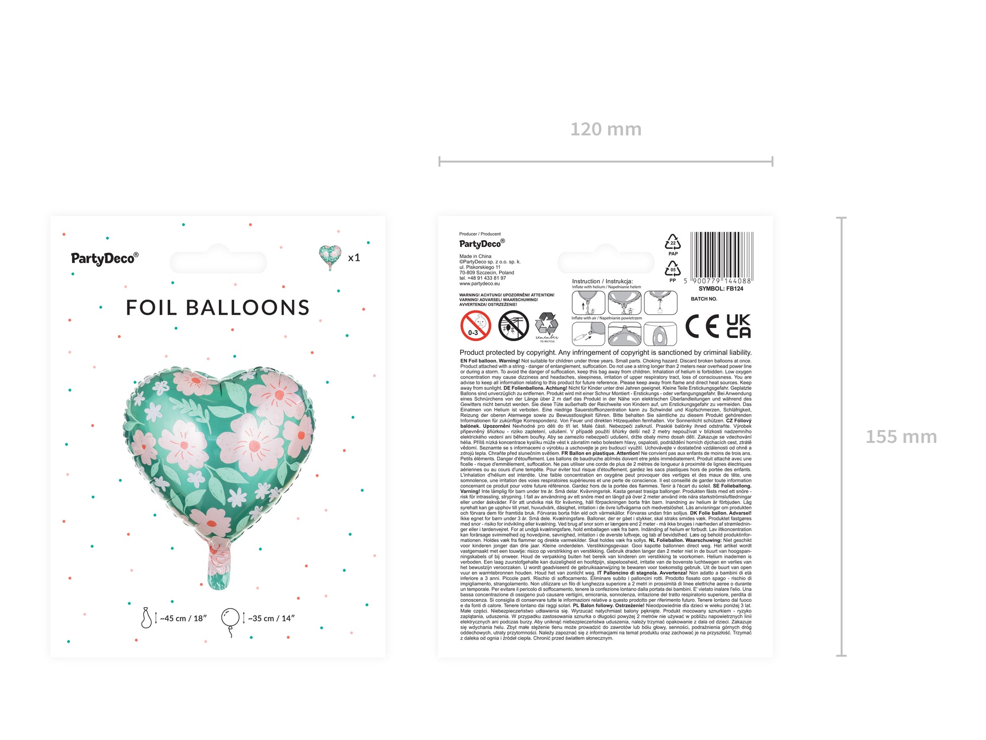 Palloncino in foil cuore con fiori 45cm
