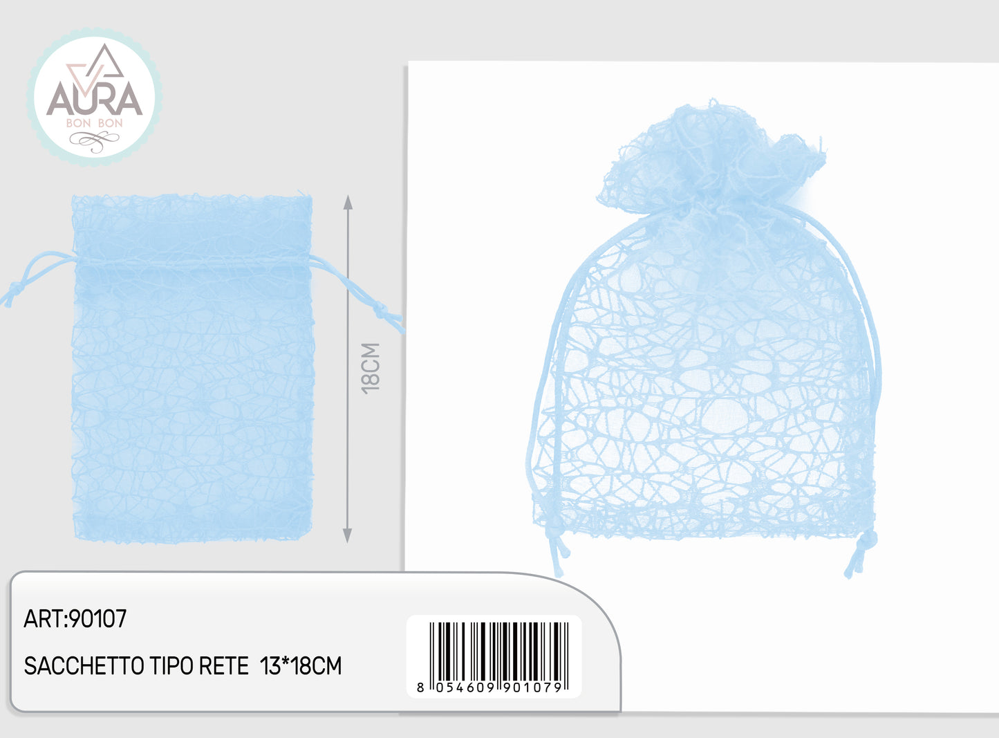 Un sacchetto celeste, delicato e raffinato, perfetto per confezionare bomboniere, piccoli regali o decorare matrimoni, battesimi e altre occasioni speciali. La sua trama intrecciata dona un tocco di leggerezza ed eleganza, ideale per allestimenti dallo stile fresco e sofisticato.
