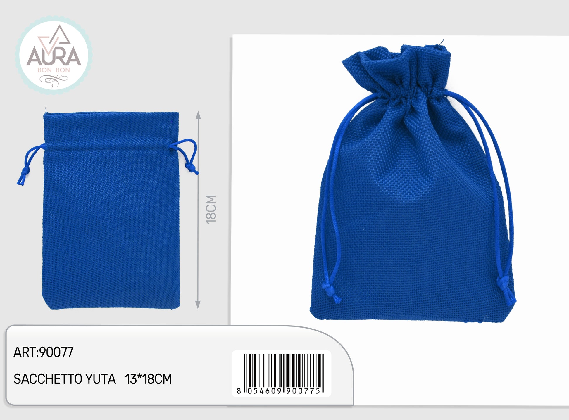 Un sacchetto di yuta blu, elegante e versatile, perfetto per contenere bomboniere, piccoli regali o come decorazione per matrimoni, battesimi e altre occasioni speciali. Il suo colore intenso e la texture naturale aggiungono un tocco di raffinatezza e originalità, ideale per eventi dallo stile classico o moderno.