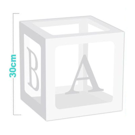 Set di 4 cubi bianchi 30x30cm con scritta "BABY", ideali per allestimenti a tema e compleanni. Rendono ogni festa unica e speciale!