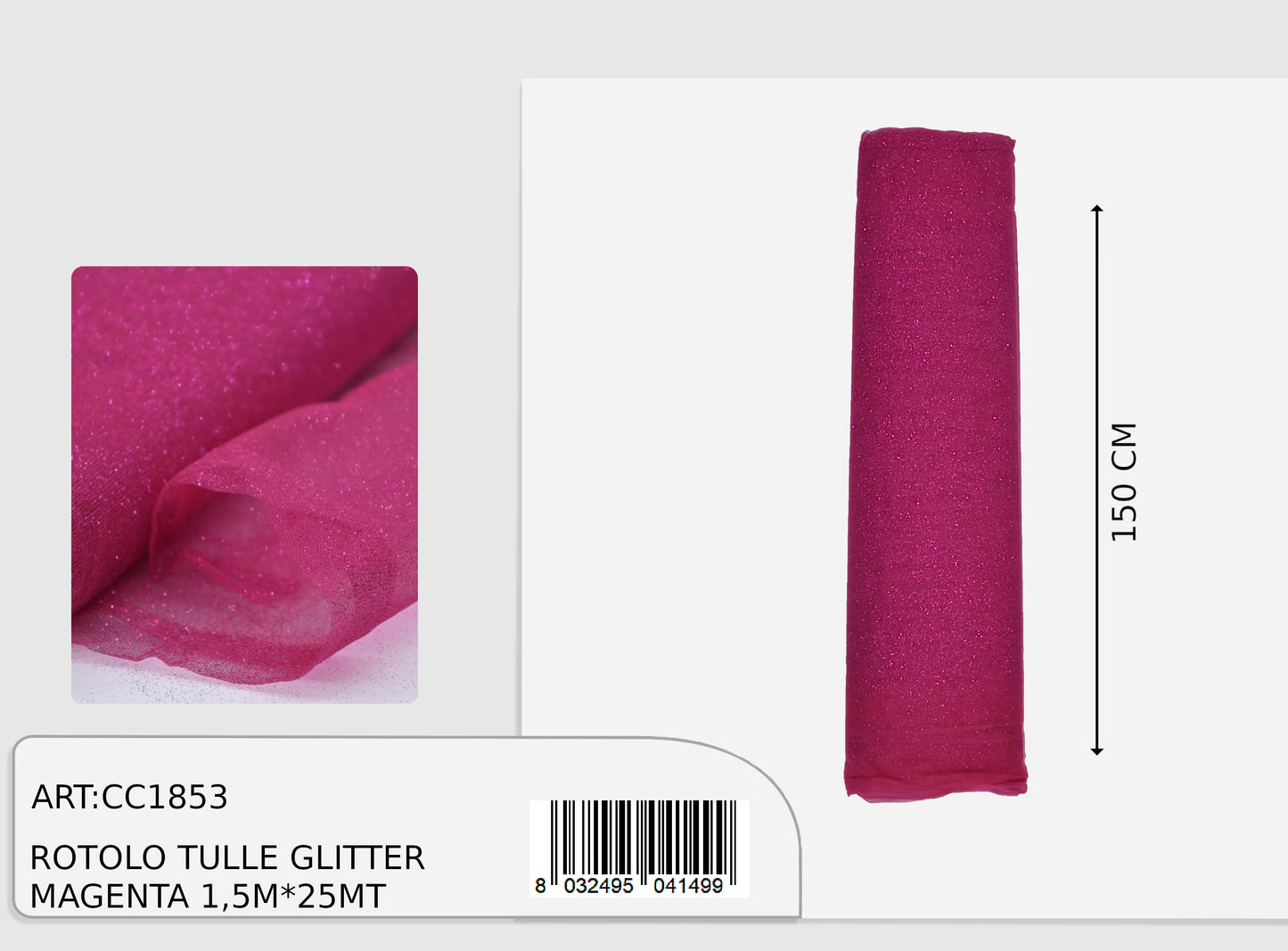 Rotolo tulle glitter magenta 1,5x25m (prezzo al metro)