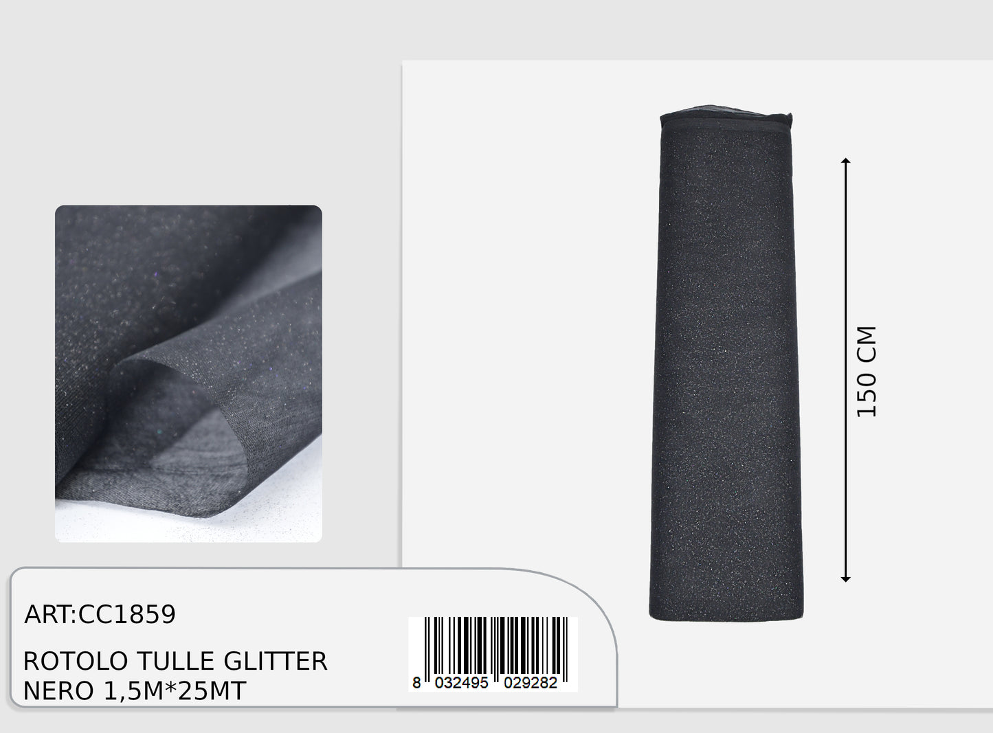 Rotolo tulle glitter nero 1,5x25m (prezzo al metro)