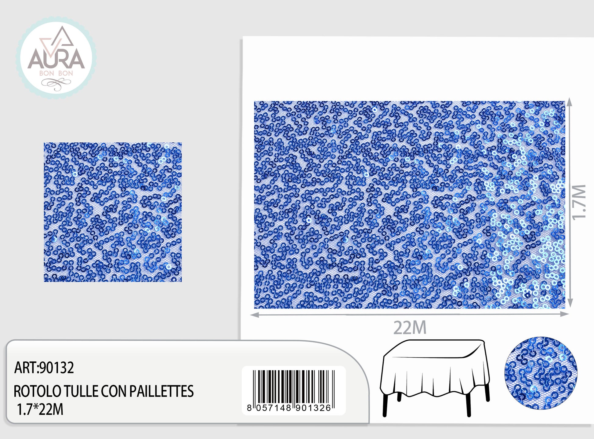 Tulle con paillettes 1,7m di larghezza blu